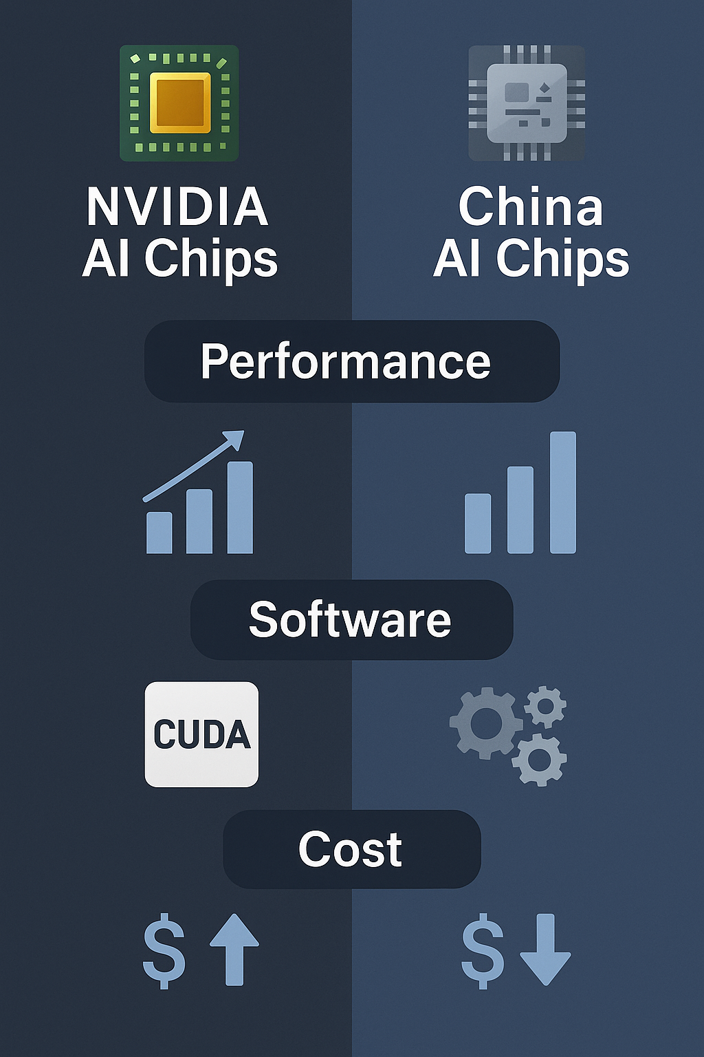 - 소프트웨어 생태계 부재: CUDA와 같은 범용 툴이 부족합니다. 중국산 칩은 TensorFlow, PyTorch 최적화가 미흡해 연구자들이 즉시 활용하기 어렵습니다.